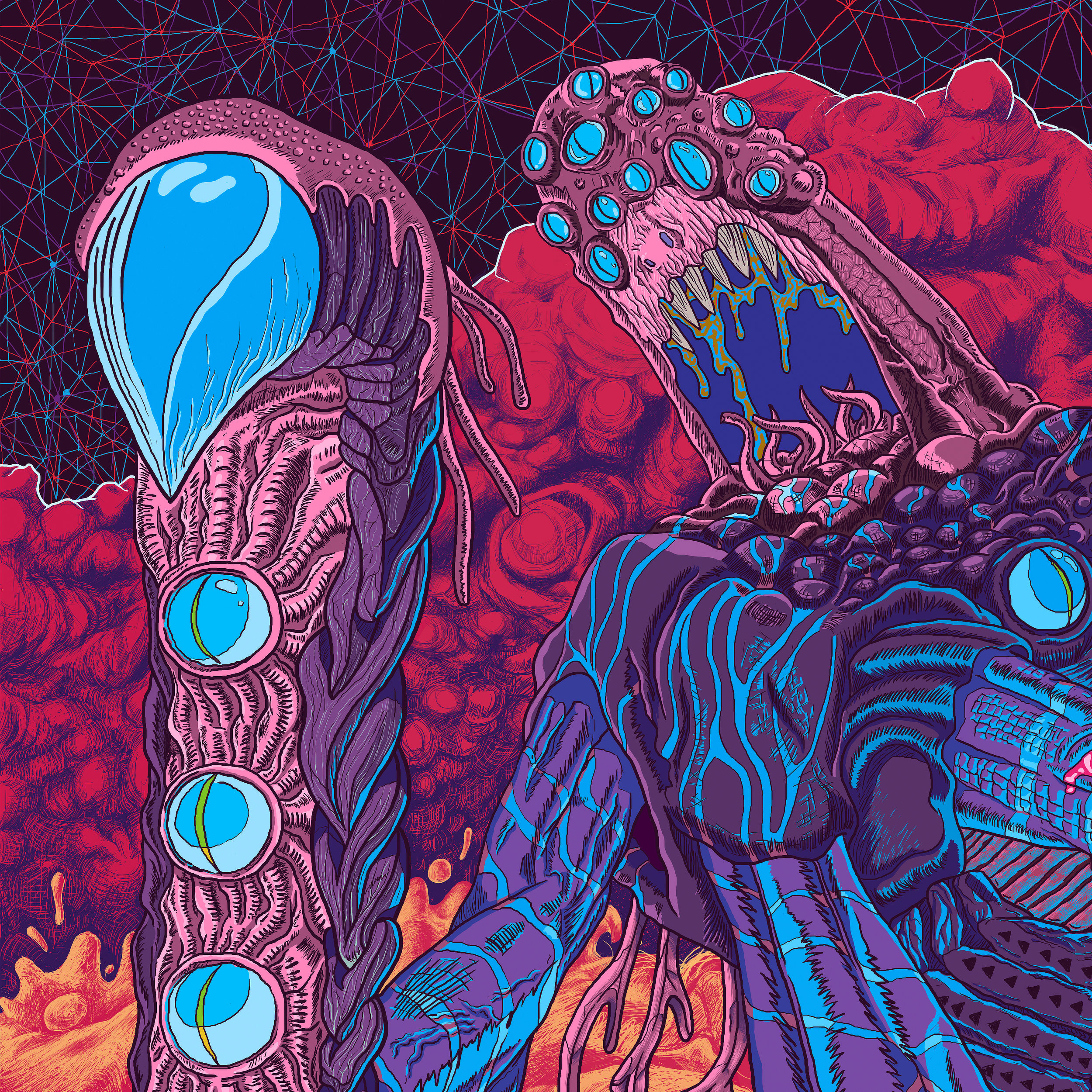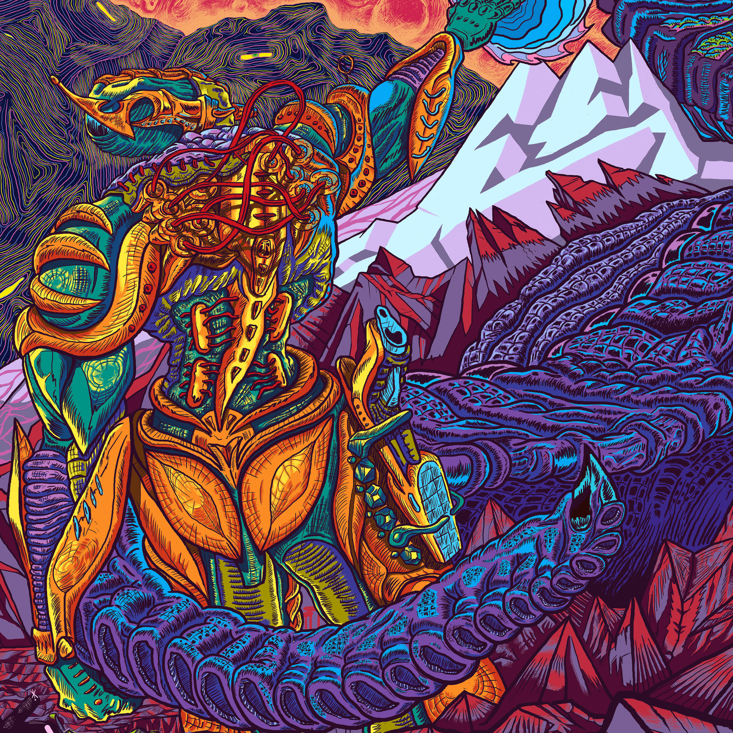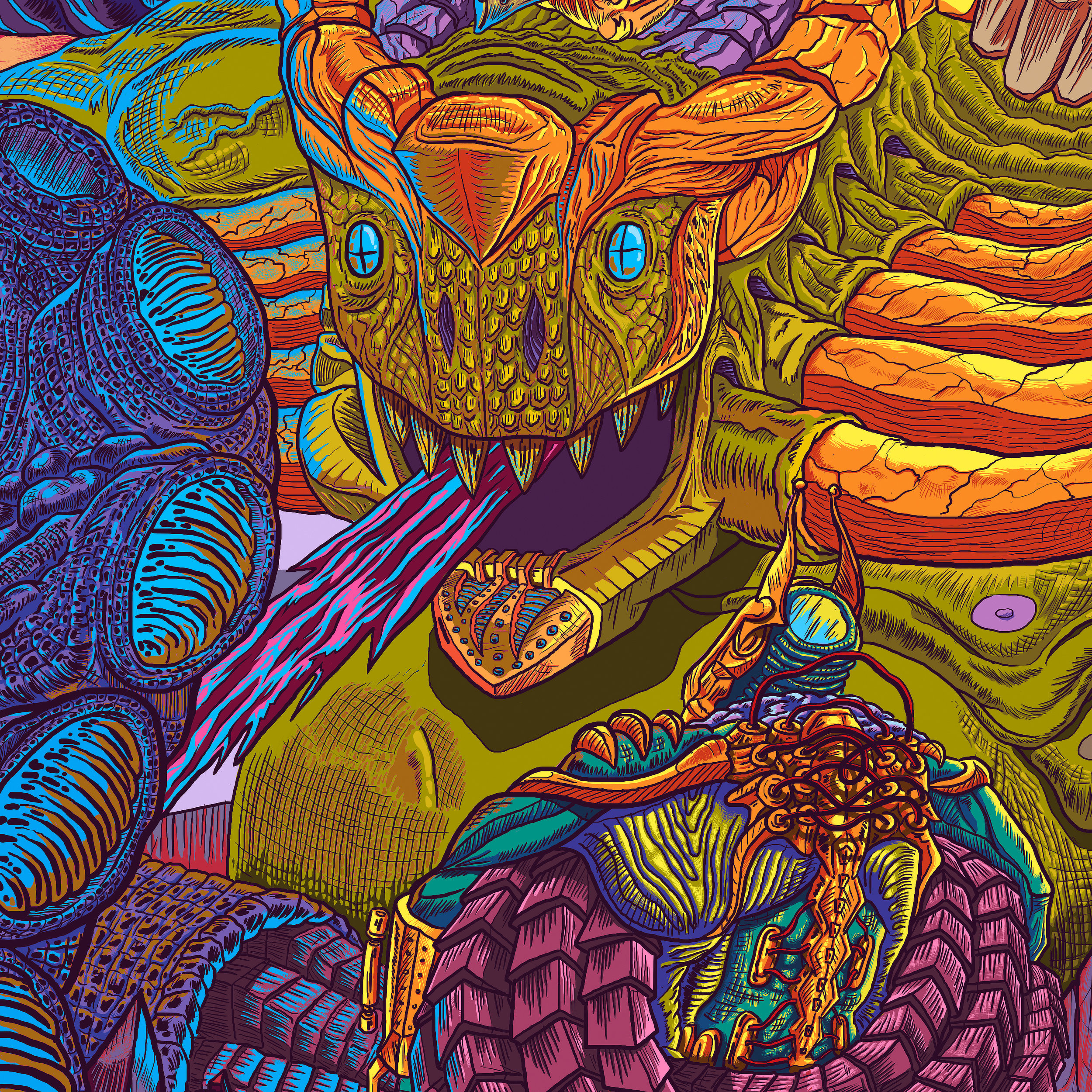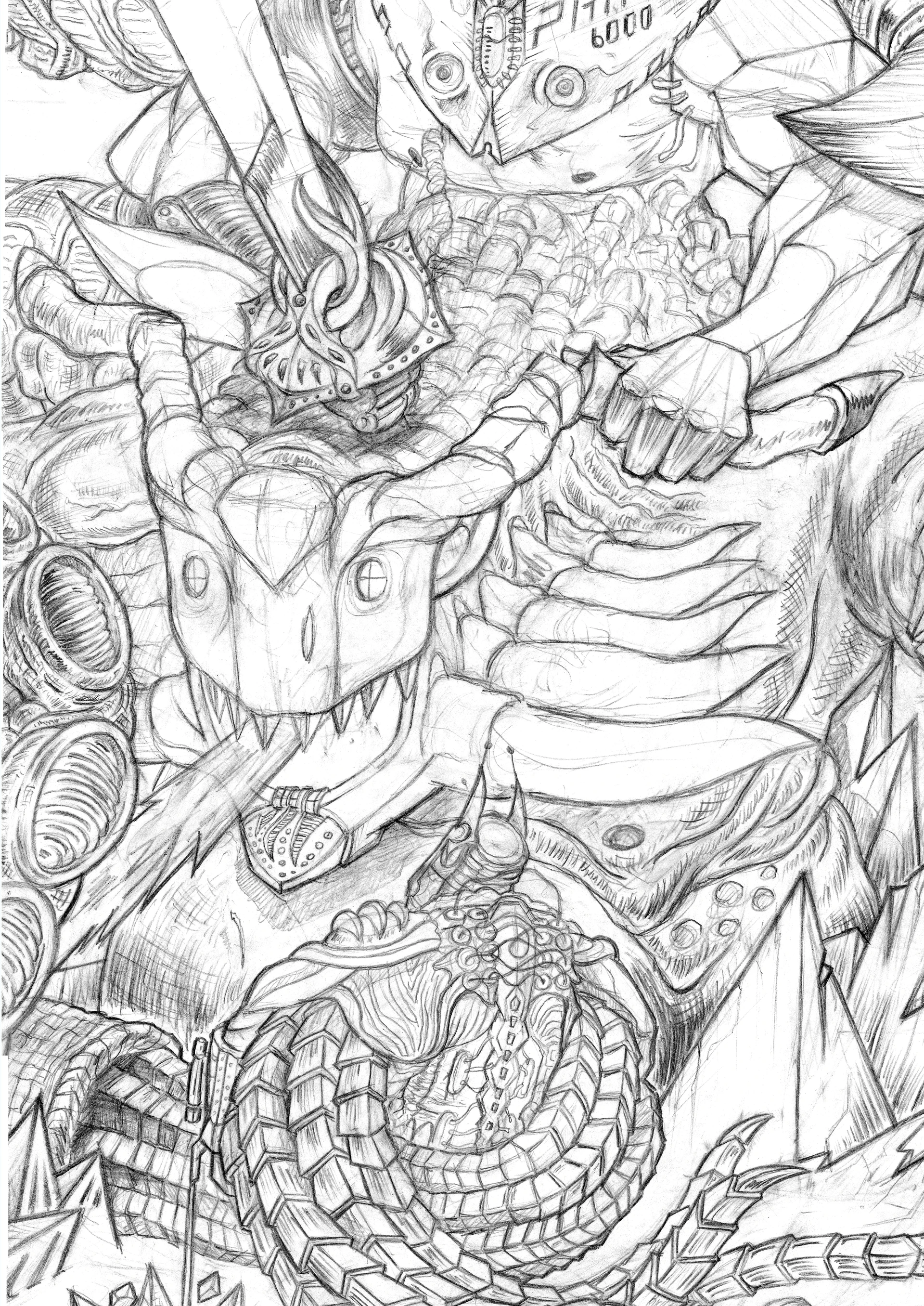 A commissioned project from my earlier archives. This piece reflects an early stage in the formation of my drawing style, built upon strong, definitive outlines. It was my first illustration where the narrative layer began to compete for attention with high-density detail.